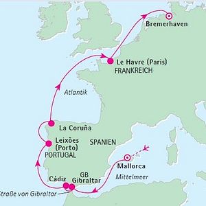 | Einzelunterbringung ab € 3.908,- auf Anfrage buchbar. Schiffspassage: Preis p.P. im PRO-Tarif (lim. Kontingent) bei 2er-Belegung. Sie wählen Ihre Wunschkabine aus. Es handelt sich um Frühbucherpreise, gültig bis 31.01.2026. Zzgl. Touristensteuer Palma € 3,30 p.P./Nacht und Einreisegebühr Großbritannien ca. GBP 16,– p.P. (ca. € 20,–) | ||||||||